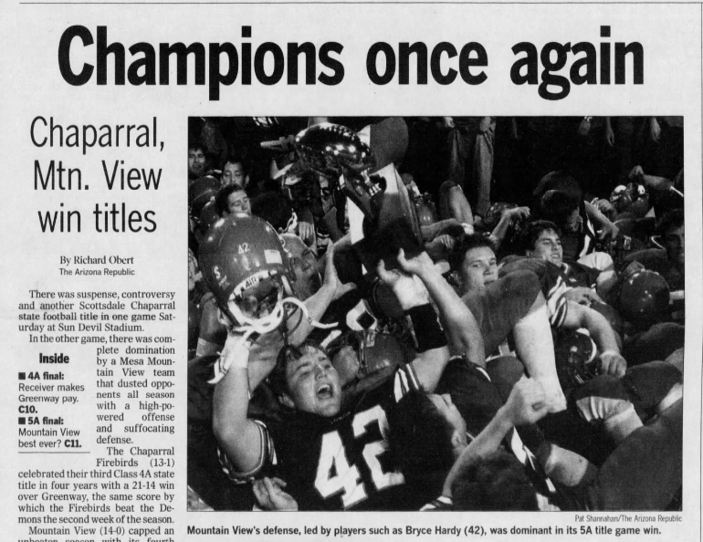 Mountain View High School opened in 1976 as Mesa’s third public high school. The Toro football program quickly established a tradition of excellence, capturing its first state championship in 1978.